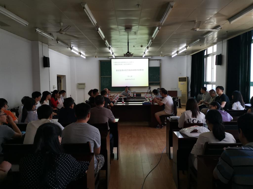 6月5日上午,副校长苏文甫以《新冠疫情对世界格局和秩序的影响》为题,在雁塔校区2教402室为sunbet申慱官网全体教工党员讲授专题党课。sunbet申慱官网党委书记蔡建文主持本次党课学习。