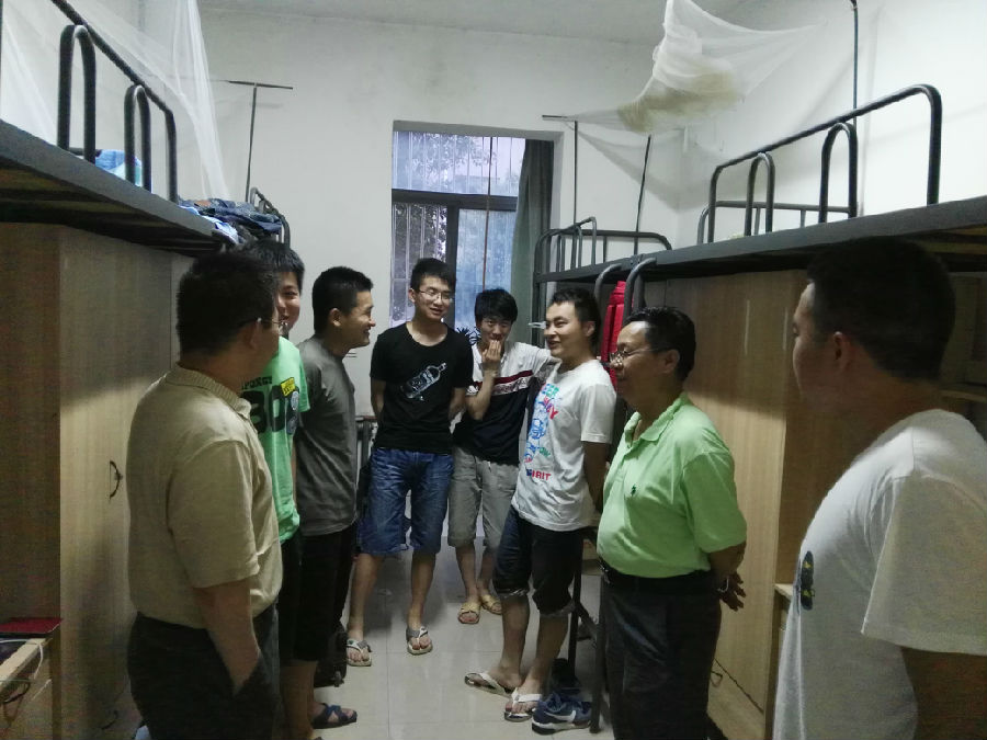 6月29、30日晚,sunbet申慱官网党委书记蔡建文、党委副书记庞秉谦、院长王魁生及学生管理办公室全体成员深入2016届本科生宿舍,看望、送别毕业生。