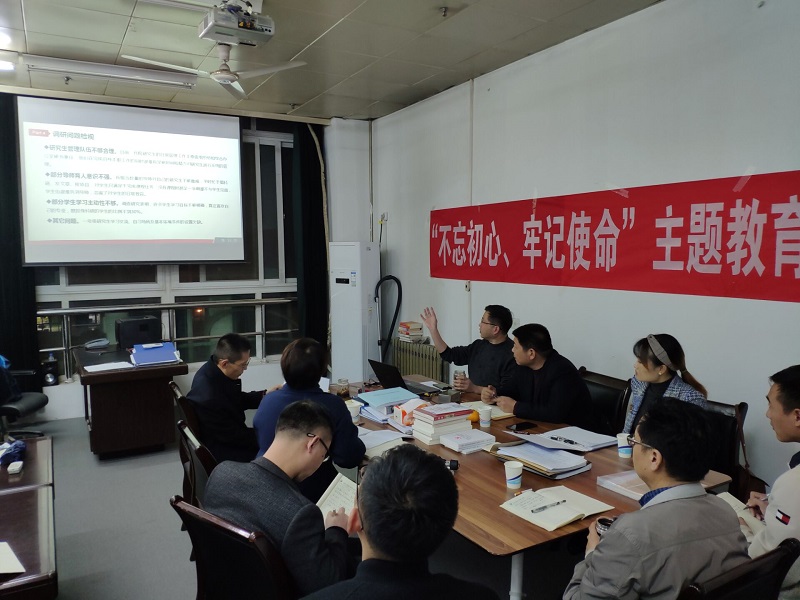 根据学校“不忘初心、牢记使命”主题教育工作安排,10月31日晚,申慱官网在雁塔校区2号教学楼406室召开主题教育工作进展汇报会暨处级干部调研成果交流会。校督导组成员耿岭、乔晓,学院理论学习中心组全体成员和各教工党支部书记参加。