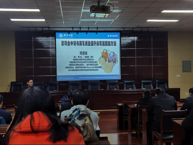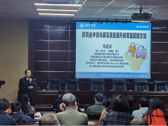 11月12日晚上,sunbet申慱官网在雁塔校区第五会议室召开2021年度国科金项目申报动员会,邀请西北大学郑建斌教授作了题为《国科金申请书撰写质量提升的拐弯超越方法》”的专题辅导讲座。学院党政领导以及全体教职工90余人参加了会议,会议由学院王魁生院长主持。