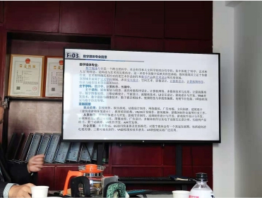 本次调研首先由韩总对公司从事业务领域、企业项目展示、项目专业岗位以及数字媒体专业前景进行介绍。通过了解行业需求,数媒系教师就专业的培养模式、发展方向、就业前景与公司从业人员进行了深入交流,并就未来的校企合作方式与内容进行了交流讨论。