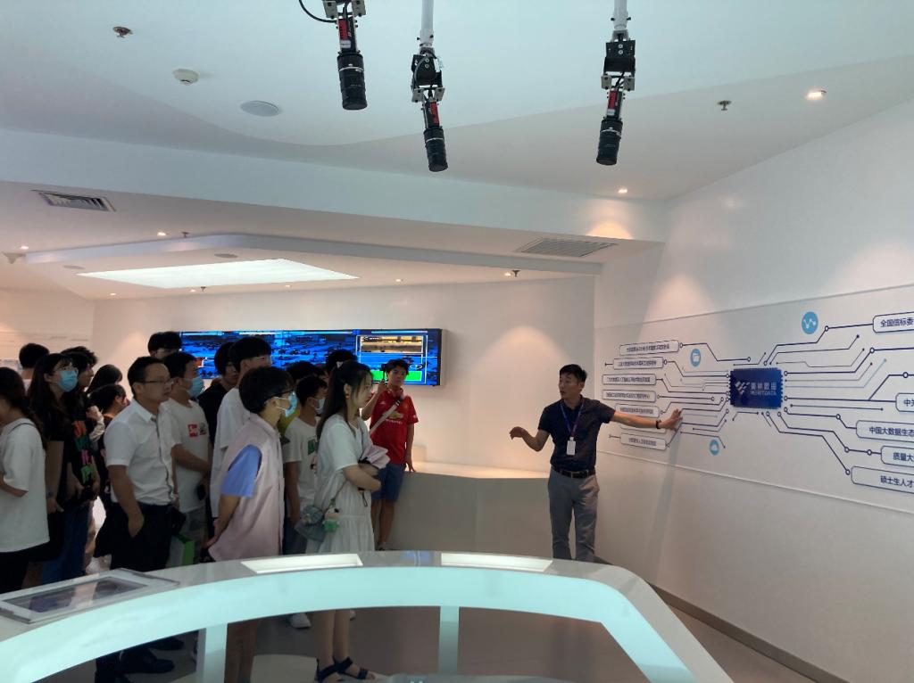 随后,公司区域总监杨东涛带领大家参观了美林数据的科技展厅,杨总监引用习近平总书记的话“推进互联网、大数据、人工智能同实体经济深度融合,推进制造业产业模式和企业形态根本性转变,促进我国产业迈向全球价值链中高端”,进一步向同学们说明了大数据发展的重要性和必要性,并就“如何通过技术和能力提升自己”与同学们进行了交流探讨。