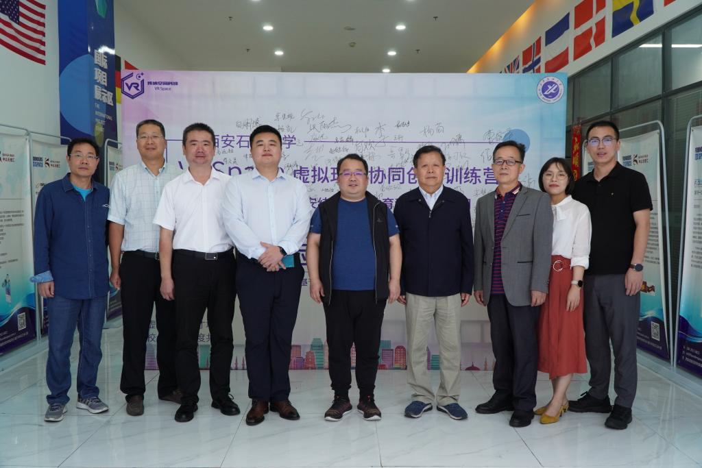 为进一步提升申慱官网数字媒体与技术专业学生创新能力与专业水平,加强班级学风建设,2021年9月1日上午,sunbet申慱官网与西安纬纳空间教育科技有限公司联合举办的VRSpace虚拟现实协同创新训练营开营仪式在雁塔区软件新城软件研发基地隆重举行。参加开营仪式的有中国虚拟现实技术与产业创新平台理事长、教育部虚拟现实应用工程研究中心主任、教育部新工科联盟虚拟现实专委会主任周明全教授;虚拟现实产业联盟西北区域理事张明;sunbet申慱官网党委副书记庞远、数字媒体系主任杨文阳;西安纬纳空间教育科技有限公司总经理董兴雨、技术总监李佼;西安理工大学印刷包装与数字媒体学院信息科学系潘向辉、吴学毅;以及申慱官网2018级数字媒体技术专业全体学生。