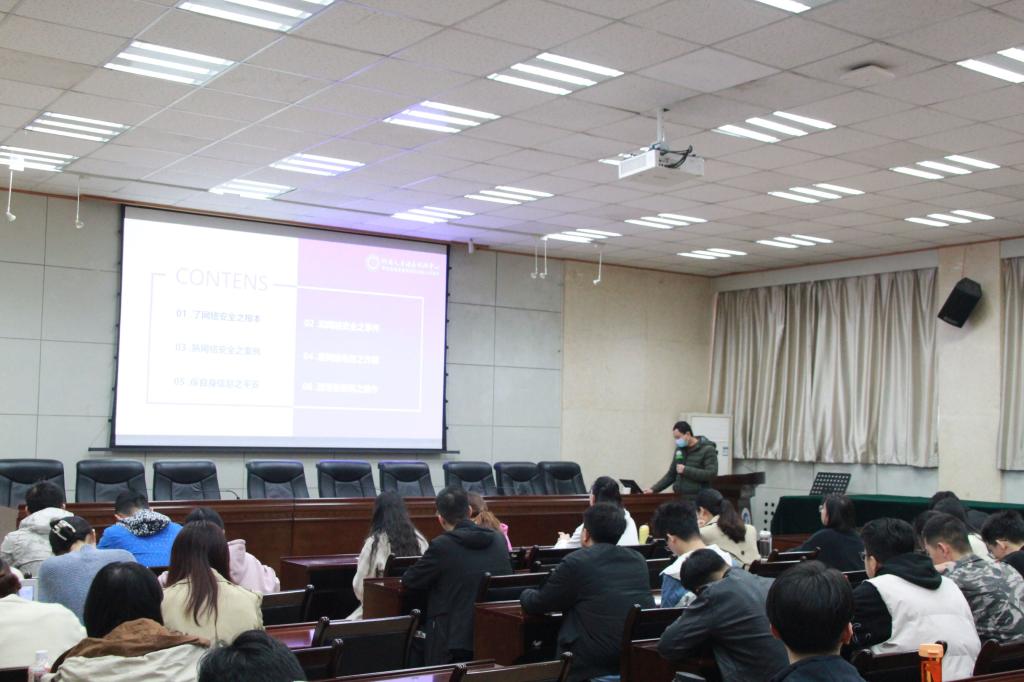 10月15日上午,西安四叶草信息技术有限公司朱利军老师在雁塔校区第三会议室做“网络安全就在你我身边”主题讲座,学院2019、2020级研究生参加。