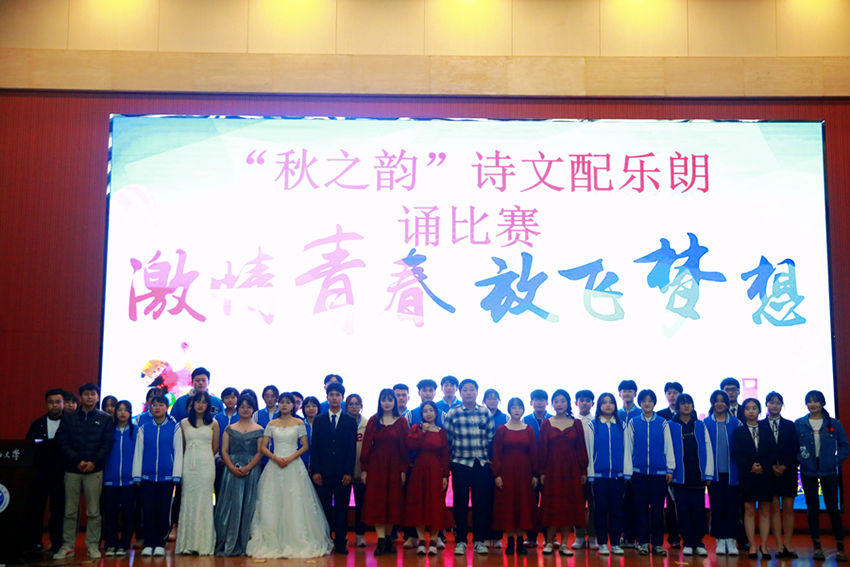 为弘扬优秀传统文化,传承诗词魅力,以文育人,展现西石大青年良好风貌,为校庆70周年献礼,10月28日晚,sunbet申慱官网在鄠邑校区弘石报告厅举办以"激情青春,放飞梦想"为主题的"秋之韵"诗文配乐朗诵比赛。sunbet申慱官网学生工作办公室主任乔晓、各年级辅导员及400余名学生参加。
