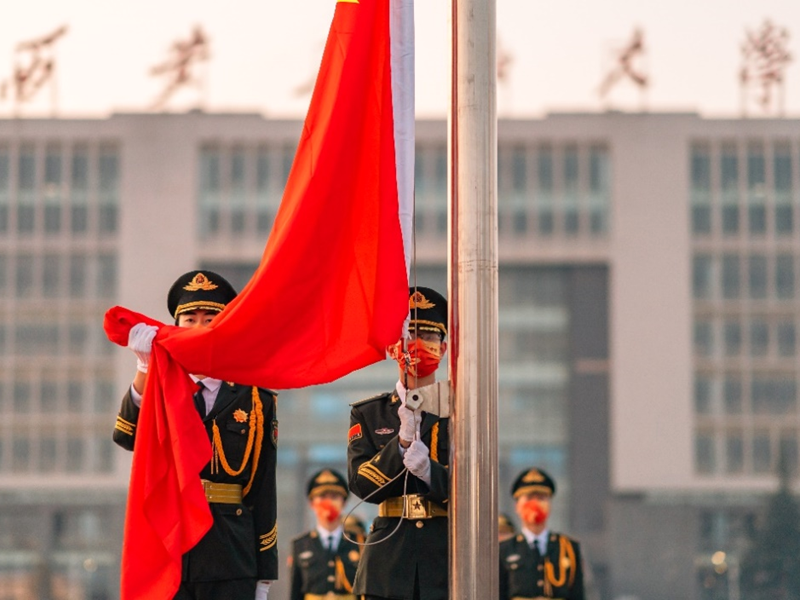 张峻宇(后排左四)圆满完成2022年元旦升旗任务