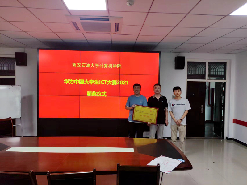 华为中国大学生ICT大赛是由华为技术有限公司主办、宇信教育协办、中建信息赞助、软通动力和泰克教育等协办的、面向全球大学生打造的ICT人才竞技交流赛事。自2021年9月起,本次大赛的初赛从陕西各高校起航,sunbet申慱官网作为参赛高校之一,克服疫情防控的困难,sunbet申慱官网通过线上宣讲与辅导、线下实践操作等方式向全体学生宣传本赛事,共派出4支参赛队伍。通过激烈的初赛、决赛比拼,最终sunbet申慱官网2019级程晓鹏、2019级任兴兴、2020级肖力斩获“华为ICT大赛实践赛-本科组网络赛道”二等奖。