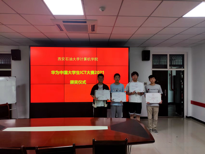 2022年5月24日,sunbet申慱官网在博知楼112会议室举办2021华为中国大学生ICT大赛颁奖仪式,学院党委副书记庞远、2019级辅导员王天航、2021级辅导员李路及本院参赛获奖选手参加此次颁奖仪式。
