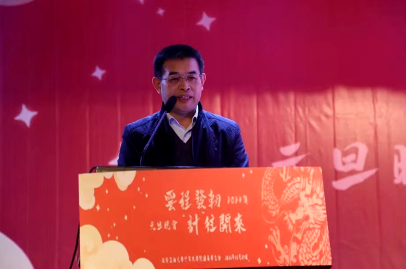 学院党委书记庞秉谦代表学院对出席晚会的领导、嘉宾、老师和同学们表示感谢和欢迎。他首先肯定了一年来学院学科专业建设取得的突破进展与人才培养质量的稳步提升;其次对全体同学提出明确历史使命和时代责任,明确学习目标和生涯规划,端正态度积极行动三点要求,希望全体同学能够做一名有高度、有深度、有力度的新时代大学生;最后祝愿本次晚会圆满成功,再次向学院全体教职工和同学们致以衷心的感谢,希望在未来的日子里,学院能够继续凝聚共识、开拓创新,为促进国家的科技进步和人才培养事业做出更大贡献。