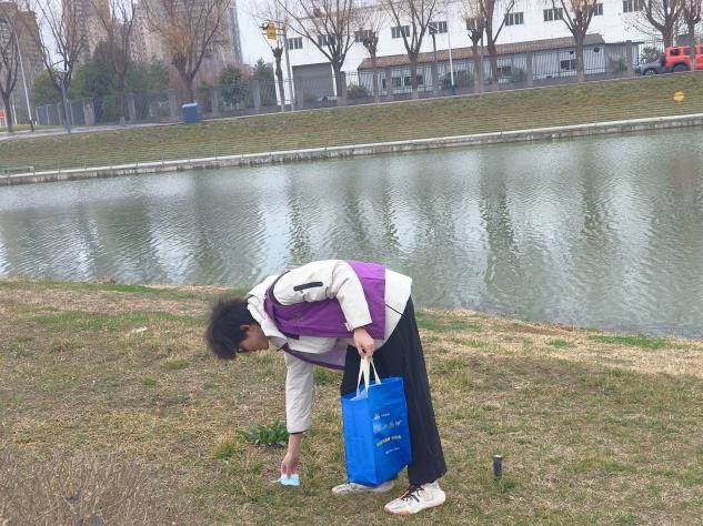 清理工作覆盖了潭滨公园内的草坪、步道、湖边等区域。在活动中,志愿者们怀揣着满满的热情与干劲,领取了手套、垃圾袋等工具,在认真聆听了活动组织者讲解的注意事项后,同学们明确了各自的分工。沿着蜿蜒的步道、茵茵的草坪与宁静的湖边,开展地毯式“垃圾大搜索”。步道上的烟头、纸屑、草丛里的塑料瓶、角落中的废旧包装袋都被收集清理干净。