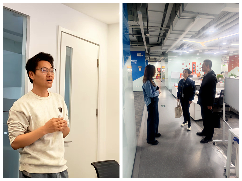 最后,陈紫怡、张裕旺带领师生参观了猿辅导西安分公司工作区,让同学们沉浸式体验教育科技行业的工作状态,走进企业一线,提前熟悉就业岗位环境。