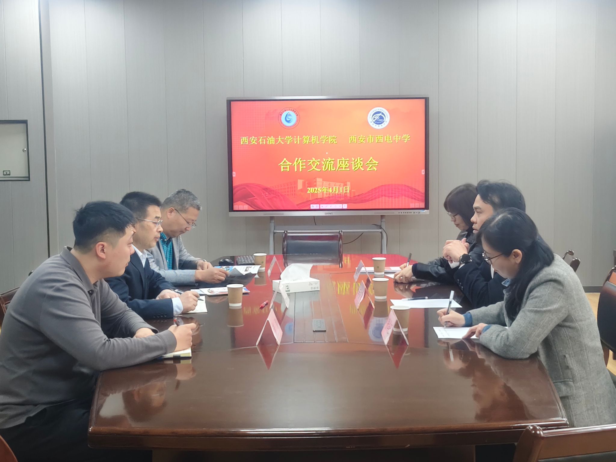 为深化基础教育与高等教育的协同发展,探索人才培养新路径和本科生招生宣传新模式,4月1日上午,sunbet申慱官网与西安市西电中学在雁塔校区东方石油楼404会议室举行合作交流座谈会暨“科教融合实践基地”签约授牌仪式。sunbet申慱官网党委书记庞秉谦、教学副院长杨文阳、办公室主任李路,西安市西电中学校长李智飞、副校长张华玉、办公室主任董娅婷参加了交流座谈会。