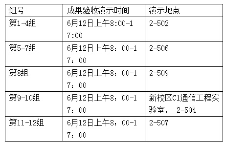 6月12日(14周周五)各答辩组安排检查毕业设计成果演示,并填写成果验收表格。