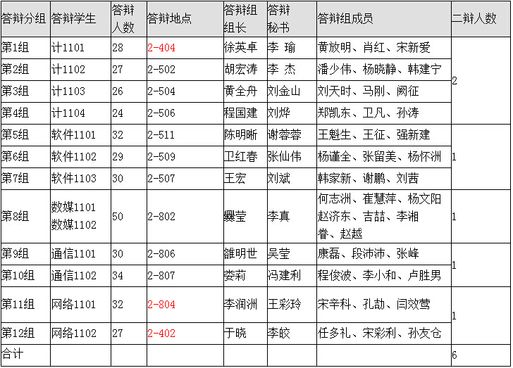 二、答辩分组清单