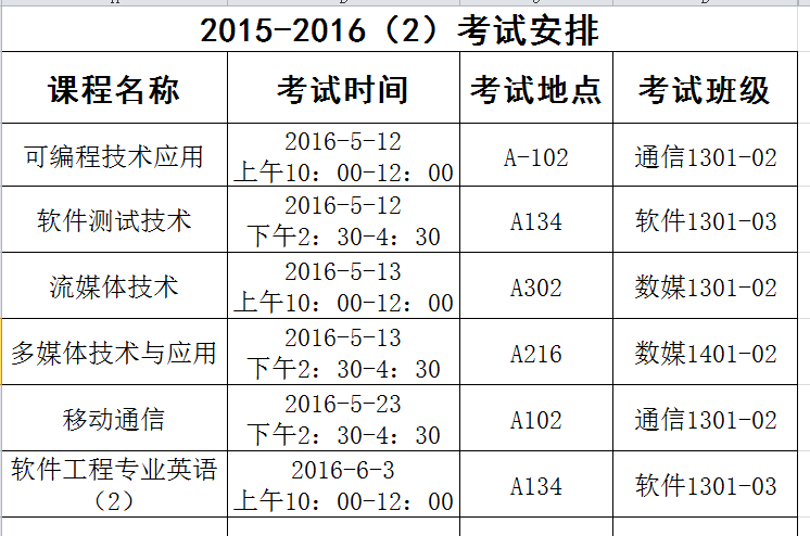 2015-2016学年第二学期考试安排1