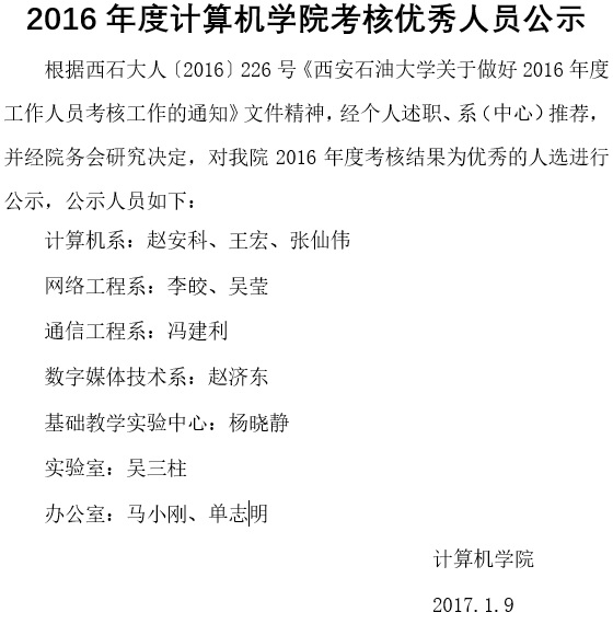 2016年度sunbet申慱官网考核优秀人员公示