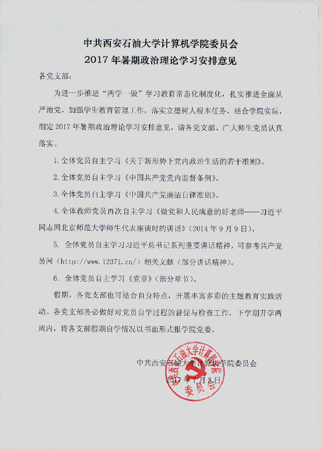 2017暑期政治理论学习安排