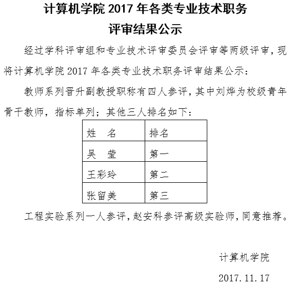 sunbet申慱官网2017年各类专业技术职务评审结果公示
