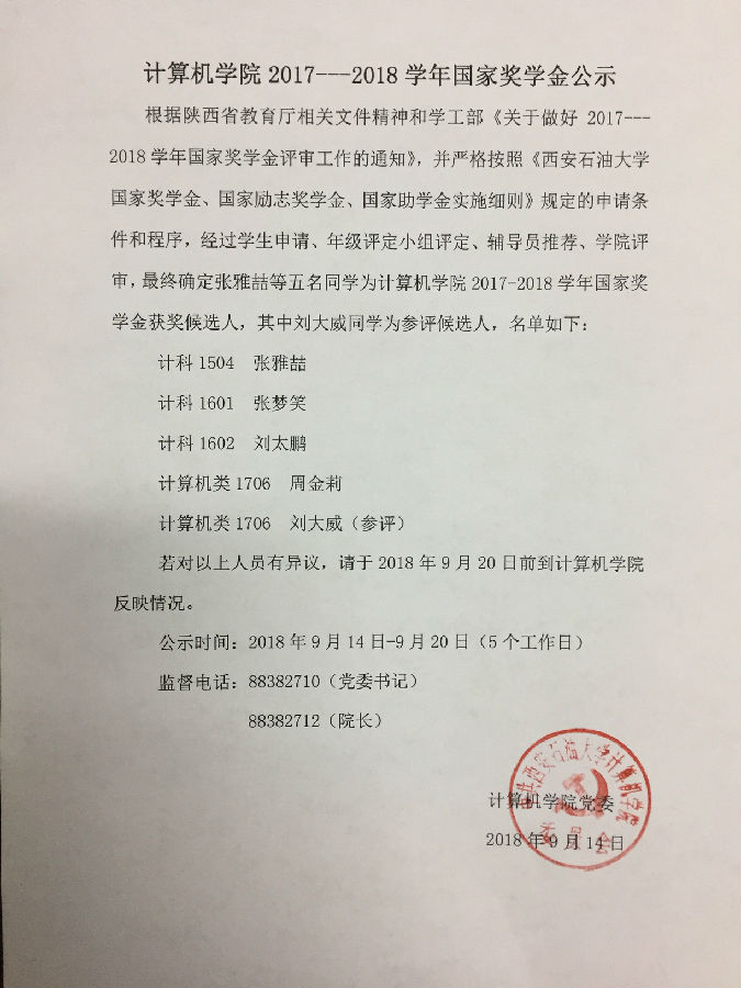 sunbet申慱官网2017--2018学年国家奖学金公示