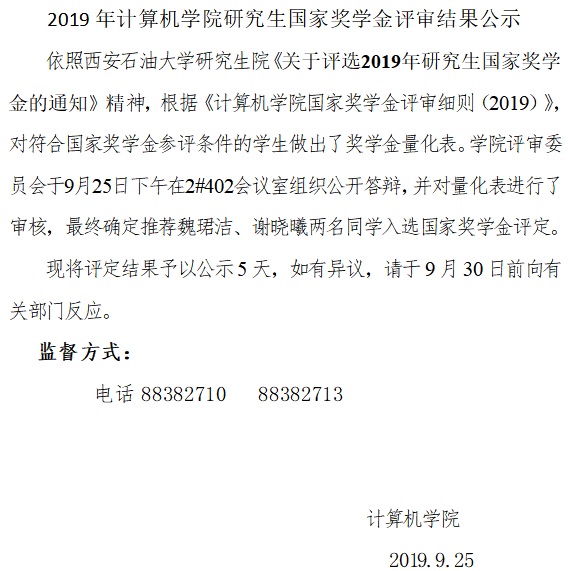 2019年sunbet申慱官网研究生国家奖学金评审结果公示