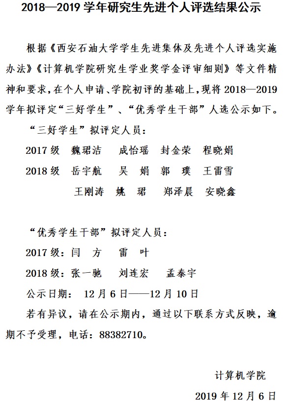2018—2019学年研究生先进个人评选结果公示