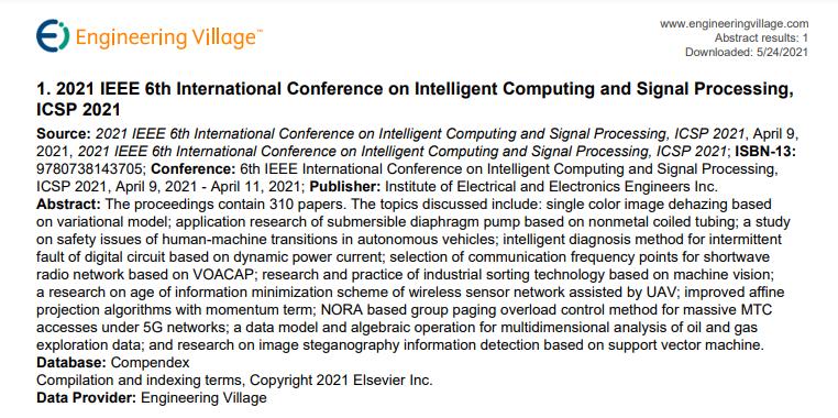 ICSP2021论文集已经被EI检索