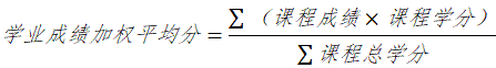 学业成绩加权平均分考核范围为专业人才培养方案规定的前三学年课程成绩,计分办法为: