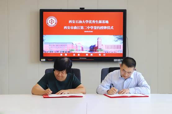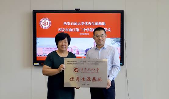 为加强学校本科招生宣传工作,持续推进优秀生源基地建设,6月18日上午,学院党委书记庞秉谦、教务处副处长陈熙等一行4人赴西安市曲江第二中学举行“优秀生源基地”签约授牌仪式。