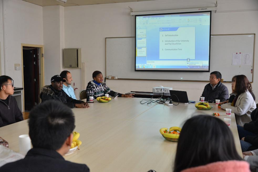 会议由申慱官网刘天时教授主持,三名来自尼日利亚和乌兹别克斯坦的留学生及申慱官网在校全日制研究生代表共二十余人参加本次交流会。首先,三名留学生分别做了自我介绍,并简要叙述了所在国家及家乡的基本情况。然后,由2018级研究生尹艺珂同学从多方面分别介绍了申慱官网和申慱官网的情况,包括三个校区基本情况、学科建设、师资队伍、本科学生数量、研究生招生规模和留学生规模等。接着从地理位置、发展历史、名胜古迹、自然风光和特色小吃等方面介绍了古都西安。最后进入互相交流环节。整个交谈过程中大家热情高涨,与会学生从家乡聊到所学专业、兴趣爱好,一步步加深对于彼此的了解,气氛温馨、融洽,直至交流座谈会结束,大家仍有意犹未尽的感觉,为了方便以后继续沟通与交流,会后参会同学还建立了微信群。