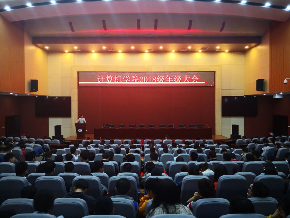 4月3日晚,申慱官网在鄠邑校区图书馆弘石报告厅召开2018级年级大会。申慱官网2018级辅导员丁亦喆、李晨及2018级全体学生参加。