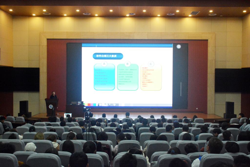 王莺老师首先以21世纪社会的人才需求作为切入点,强调了计算机行业的从业人员对当前社会所产生的巨大影响。随后,王莺老师通过分析申慱官网计算机类专业的课程设置,详细向学生阐述了计算机行业从业者所需要具备的基本能力以及未来的职业素质养成和愿景规划。最后,王莺老师站在一名企业管理者的角度,向同学们说明了当前的计算机企业需要的人才应具备的个人品质和职业素养,告诫同学们在大学的四年学习生活中,不能仅局限在课程的学习中,一定要参与到一个完整的项目中去,熟悉项目流程,理解工程思想,才能更好的掌握所学技术的实际应用。