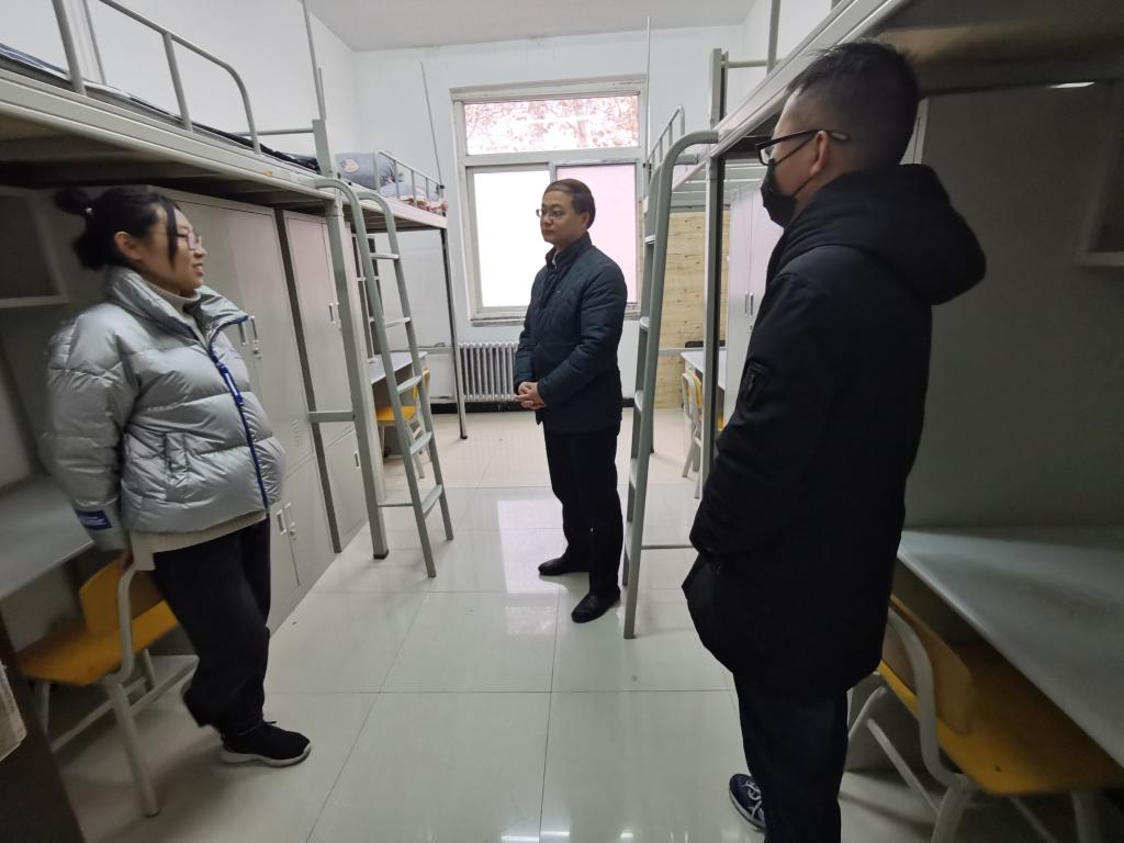 1月25日上午,sunbet申慱官网党委书记李强、学工办主任王军策、硕士生导师潘少伟前往学生宿舍走访慰问学院研一留校学生马金采,了解其因疫情影响留校期间的实际需求,并有针对性地给予指导和帮助,送去学院的慰问和关怀。