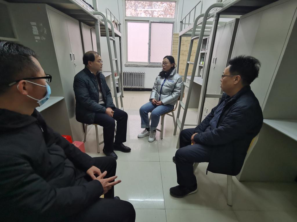 2月11日上午,sunbet申慱官网党委书记李强、院长王魁生、学工办主任王军策、硕士生导师潘少伟前往学生宿舍走访慰问学院因疫情原因不能返乡过年的研一学生马金采,为其送上新春的祝福及慰问品。