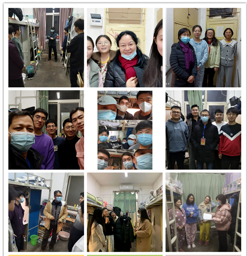 一是全过程陪伴。学院党政领导、课任教师、辅导员老师常态化深入学生宿舍,就学生们关心的疫情形势与政策、科学防护知识、爱国奉献担当、校园管理纪律、生活学习安排、心理状态调试、当下问题诉求等内容进行解读、安抚、沟通和反馈。同时,作为学工干部全员坚守在鄠邑校区的学院,学工办全体辅导员老师坚持常态化深入宿舍,及时关注学生思想动态和心理动态,做好学生与学校之间良性沟通的桥梁。二是全过程教育。学院印发关于开展疫情防控期间开展线上主题班团会的通知和关于开展线上宿舍系列文化活动的通知文件,将思想政治教育和文化育人结合起来,确保疫情期间思想政治教育有成效,文化育人有成果。三是全过程管理。学院党委坚持底数清楚,精准掌握学院教职工及其家属和租户人数,确保每日核酸通知无遗,检测全覆盖;教师先锋队通过走访宿舍、校园志愿服务等方式,将解决实际问题与强化人文关怀结合起来;学工办严格落实晨午检、晚签到、核酸核查、线上教学管理等工作制度,坚持线上线下相结合、督促与检查并重的方式,确保各项过程管理行之有痕、落到实处。