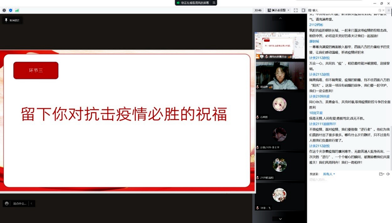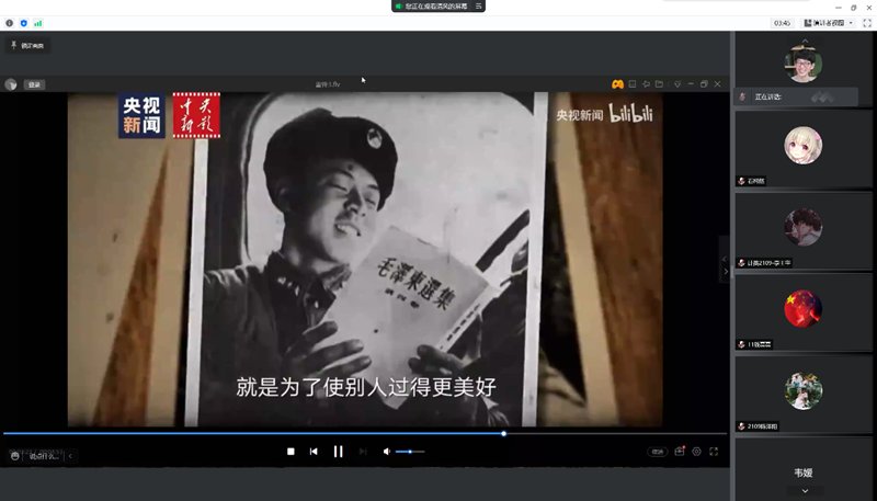 3月18日,申慱官网组织2021级本科生通过线上会议的形式观赏电影《雷锋》(节选),同时邀请了两名参加过志愿抗疫的青年志愿者,根据自己的亲身经历讲述了发生在我们身边的抗疫故事,将雷锋精神与抗疫精神相融合,引导同学们以积极的心态面对新冠肺炎疫情。